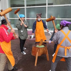 ~お餅つき~ むくの木ステージむくの木ステージでは、12/26に餅つきを行いました。 今年はモルダウ中庭で実施…