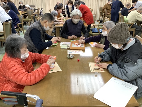 その後は、折り紙を使ってクリスマスカードを作りを行いました。