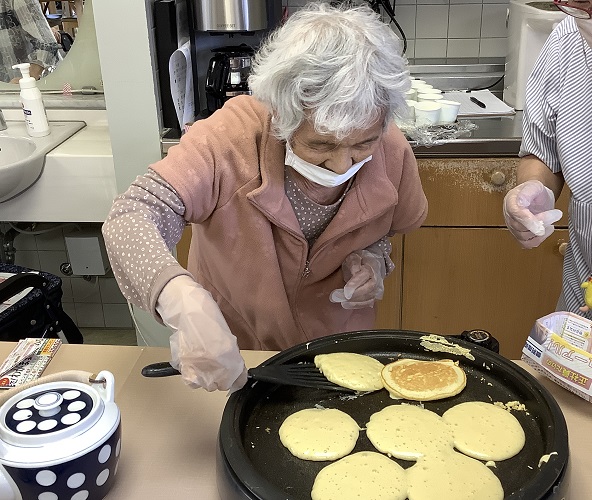 そして、入居者様と一緒にホットケーキを焼き、母の日をお祝いしました!✨
