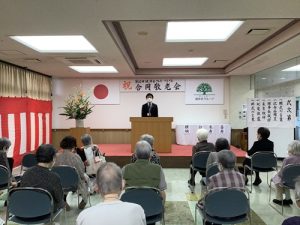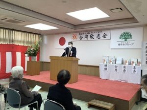 健祥会アムス施設長より、長年にわたり地域と施設を支えてくださった皆様への感謝と、健康への願いを述べました。記念品贈呈