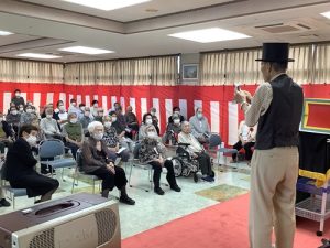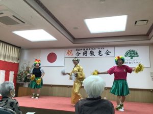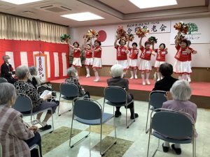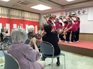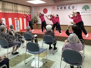 馴染みのある楽曲やリズミカルな動きに、入居者様・利用者様も自然と手拍子を合わせ、笑顔あふれるひとときを過ごされていました。