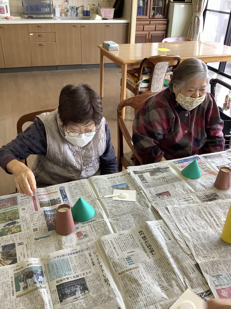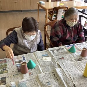 12月1日、ケアハウスでクリスマスツリーを作りをしました。