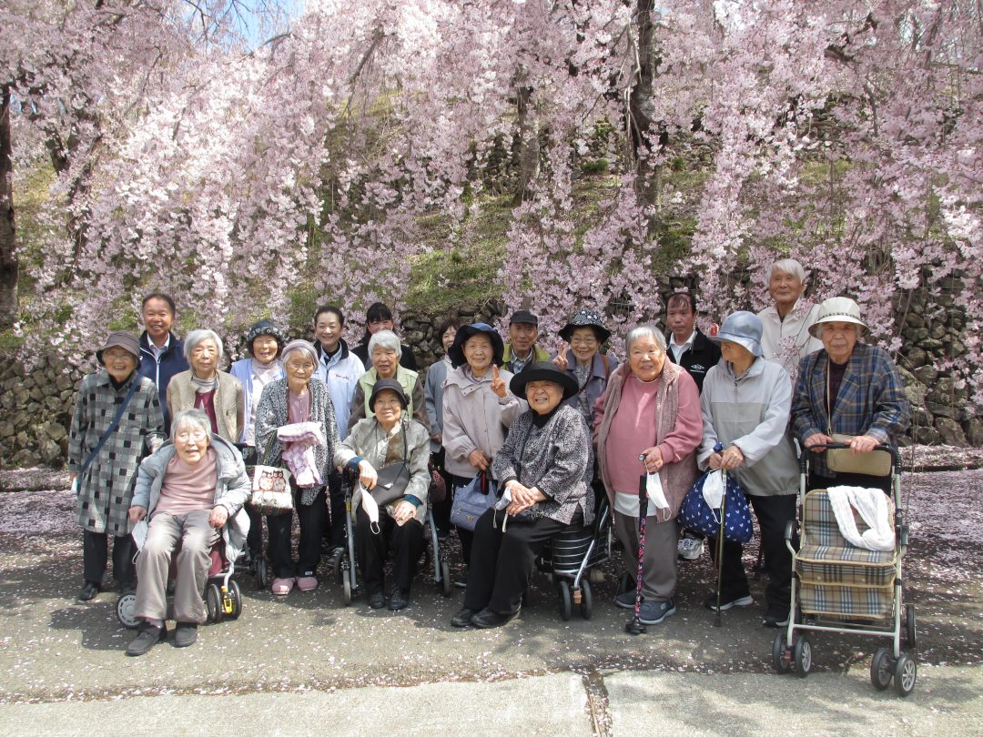 令和8年4月2日、今年も皆さん楽しみにされているお花見を実施しました。雨も心配、咲いているかも心配でしたが、見事に晴れて桜も見ごろで最高のお出かけとなりました。