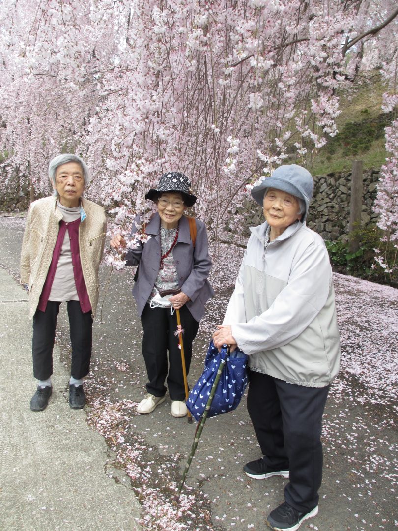 今回は阿南市熊谷町にあるお花見スポットへ行き、沢山の大きなしだれ桜が満開で圧巻でした。写真にも皆さんの笑顔があふれました。