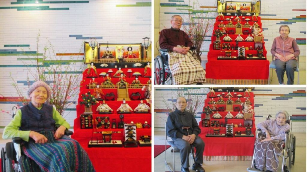 そして、ひな壇の前では、皆様で記念撮影も行いました。カメラを向けると少し照れながらも、素敵な笑顔を見せてくださいました。