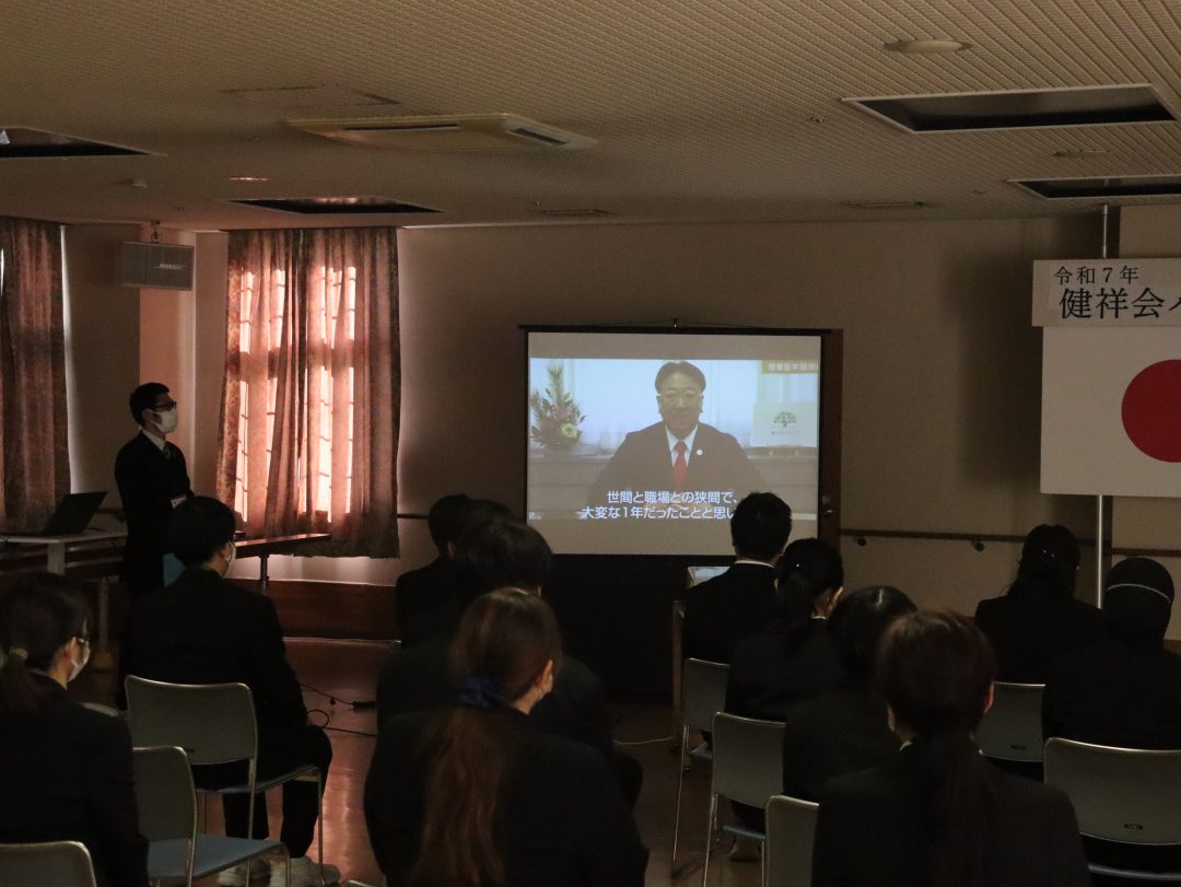 私たちは健祥会グループの職員として、また健祥会バーデン・リブレの職員として、自信と誇りを持ち、相手を思いやる優しさと愛情を胸に、心を一つに力を合わせて進んでまいりましょう。今年は巳年です。ヘビは脱皮して成長を繰り返すように、私たちも変化と成長の一年となるよう、それぞれの専門職が知識と技術をさらに深め、利用者様に安心と安全、満足していただけるように高品質な医療、介護、リハビリ、そして食の提供に努めましょう。年明けとともに、健祥会バーデンでは全床に見守りセンサーの導入、健祥会リブレでは2月に施設外壁の全面塗装が完了する予定です。「こころ」×「digital」という施設の取り組み課題達成に向け、「健祥会バーデン・リブレも行動あるのみ」と力強い言葉と、健祥会グループ訓と健祥会グループ行動指針の実践には「こころ」が最も重要であるとの話がありました。