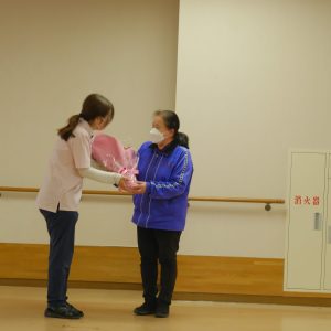 そこで、入居者の皆様には改めてお披露目の機会を…と思い、4月20日日曜日の昼下がり、「施設外壁を楽しむ会」と題して、喫茶会を開催しました。
