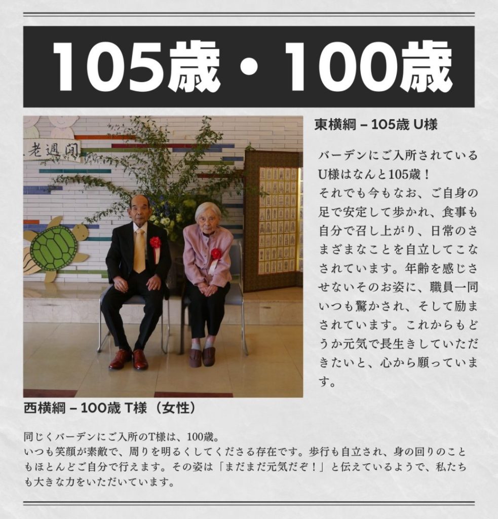 健祥会バーデン最高齢の入所者様を東西横綱として紹介させて頂きました!