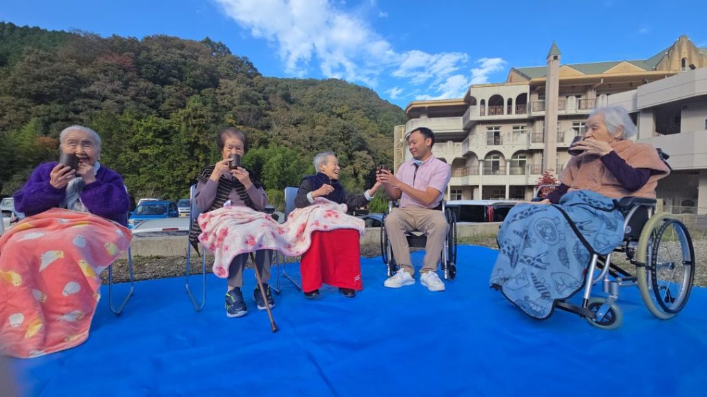 施設では、レクリエーションで心も体もリフレッシュし、外でのお茶で穏やかなひとときを過ごすことができました。まるで小さな旅行に出かけたような、そんな楽しい一日でした。