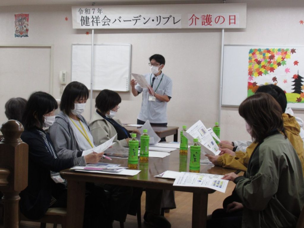 11月11日「介護の日」に合わせて、健祥会バーデン・リブレでは居宅介護支援事業所のケアマネジャーの皆さま、ケアハウス入居者様、在宅サービス利用者様をお招きし、各事業の取り組みなどご紹介させていただきました。