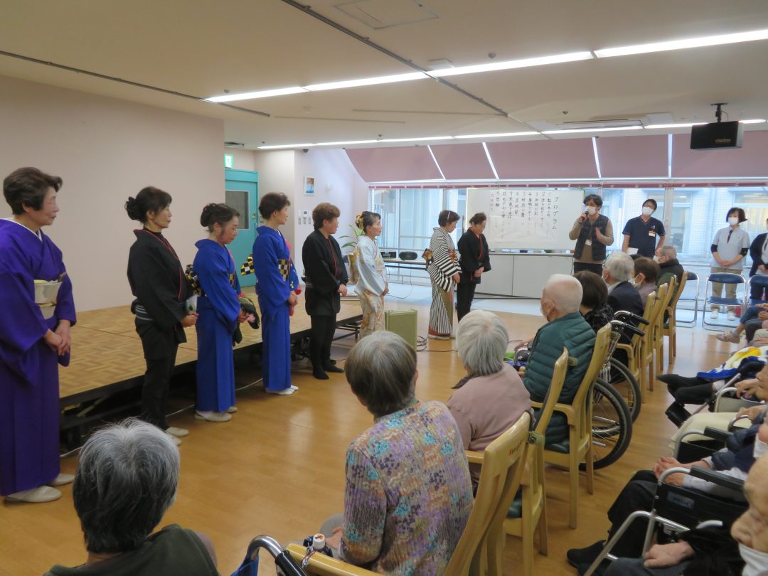演芸は、「松の木小唄」、「浮世がらす」、「朝顔日記」など入所者様の心が
