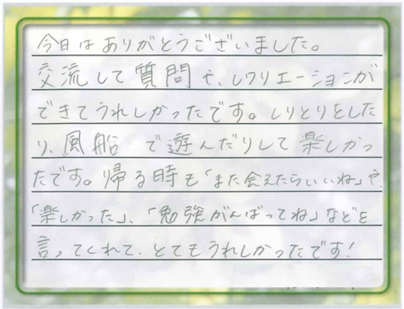 行われた江原中学校1年生との交流会を覚えていますか?