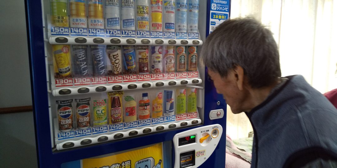 自動販売機でコーヒーを買って