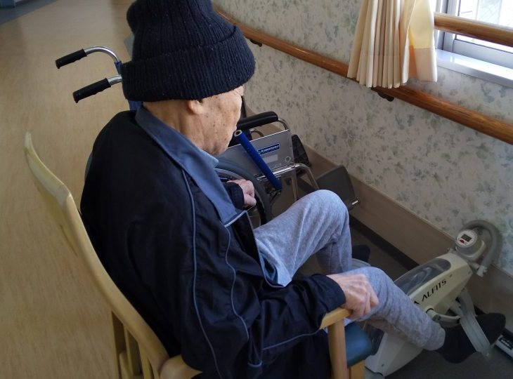 と、リハビリの時間以外にも自主訓練をがんばっていた入所者様。