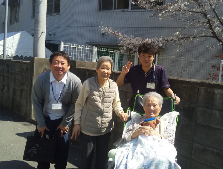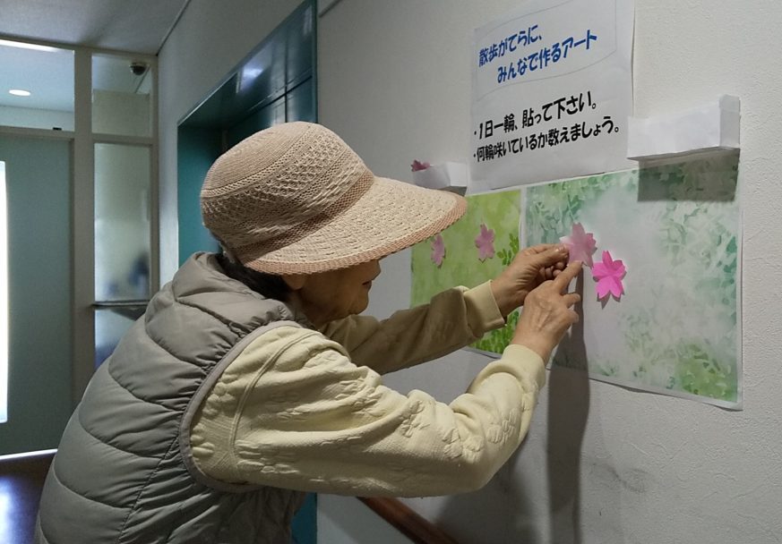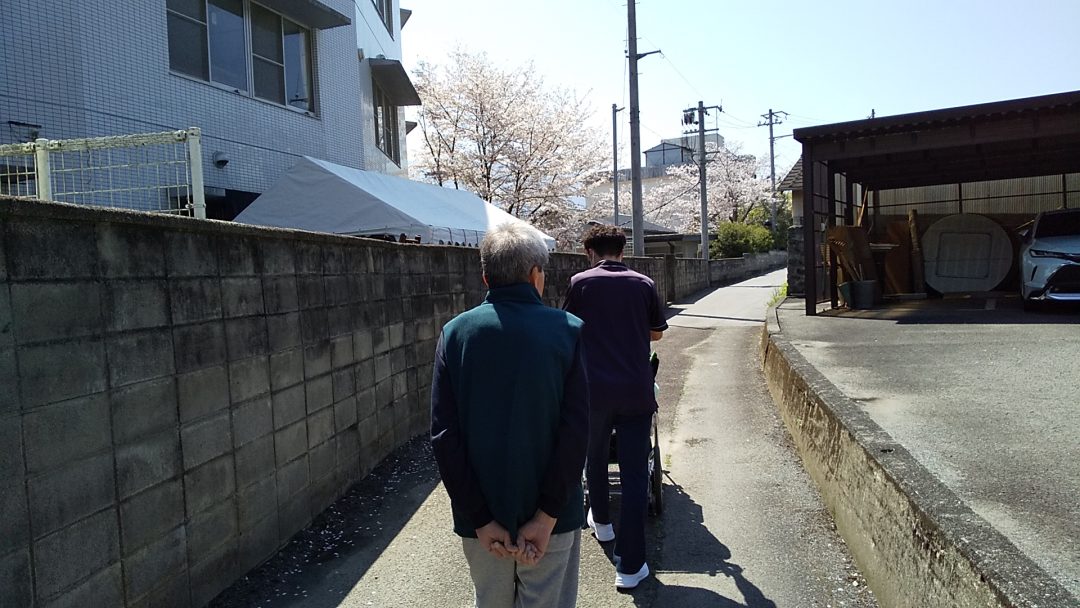 リハビリで行う屋外歩行と作業活動を組み合わせたものです。