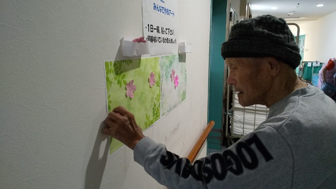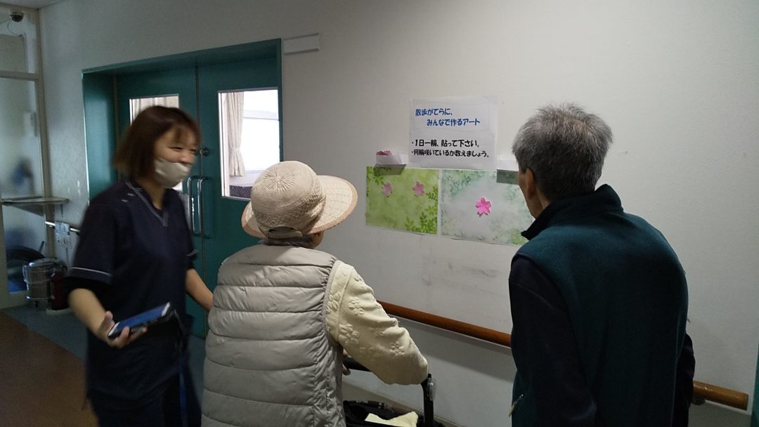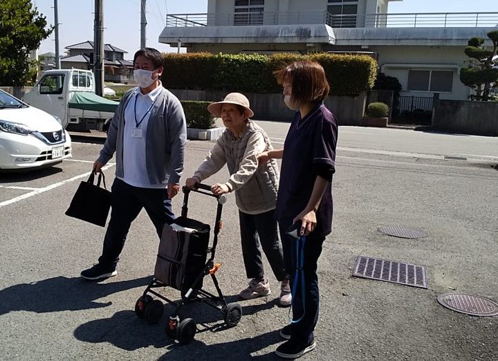 リハビリで行う屋外歩行と作業活動を組み合わせたものです。