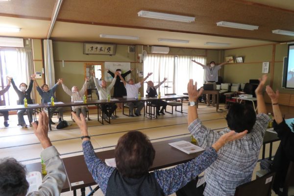 座学のあとは、ご自宅でも続けられるフレイル予防体操動画を皆さまと一緒に視聴しながら、楽しく体を動かしました!