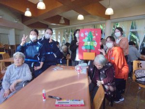 学生さんと入居者様が一緒に飾りつけをして環境づくりを楽しみました。