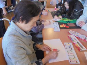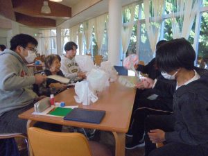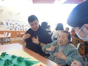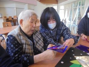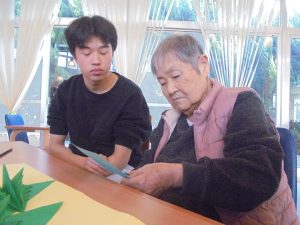 学生さんと入居者様が一緒に飾りつけをして環境づくりを楽しみました。