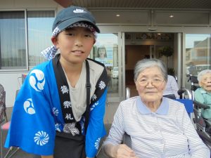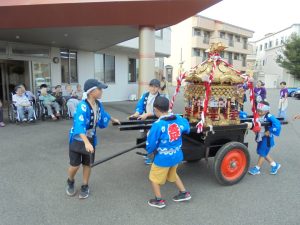 今年は、当施設の入居者様のお孫さんもみこしの担ぎ手として