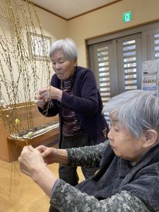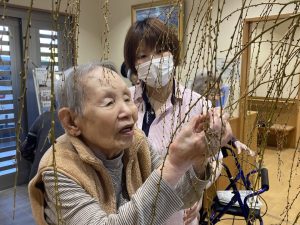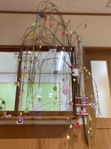 ヤナギの枝に、紅白のお餅を飾り五穀豊穣や家内安全を願っていたそうな…
