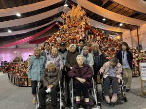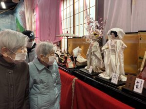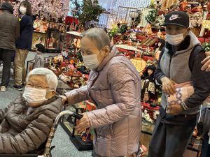 会場に入ると可愛らしいお雛様が並んでいて、入居者様の顔もほころびます💕