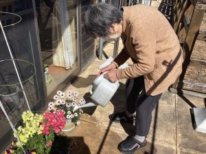 先月のブログでご紹介した、お誕生日のお祝いで利用者様と一緒に植えたお花を覚えていますか?