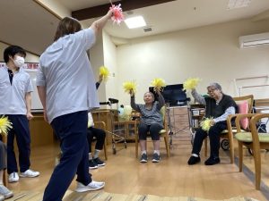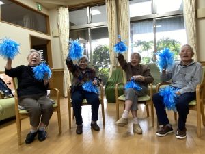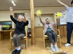 そんな職員を見ながら、しっかり体操してる入居者様💕
