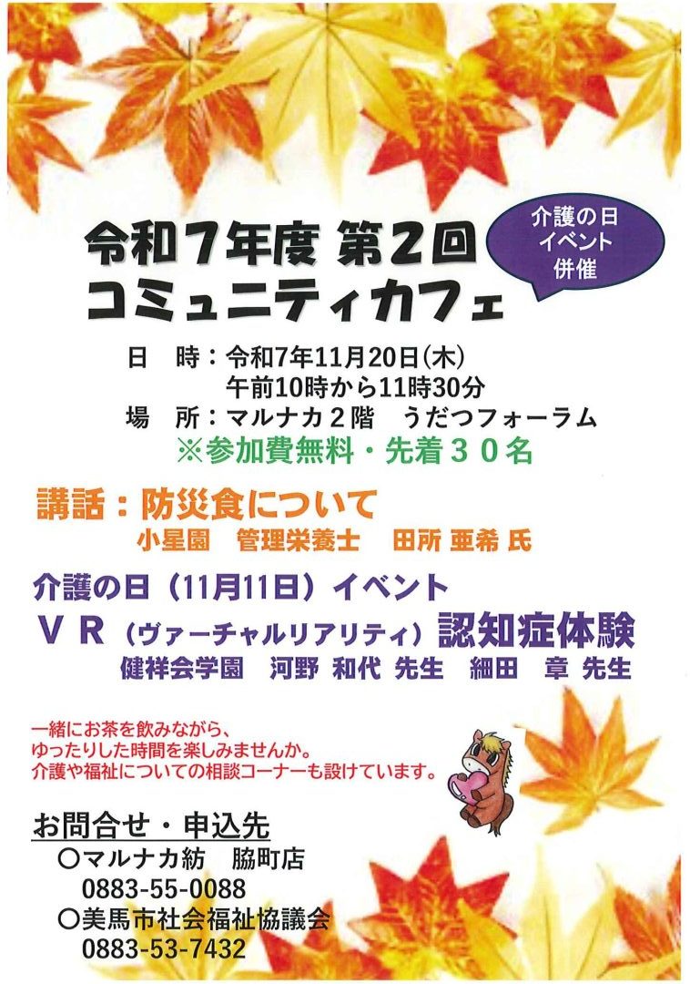令和7年11月20日(木)に美馬市マルナカ脇町店にて 令和7年度 『第2回コミュニティカフェ』を開催しました。