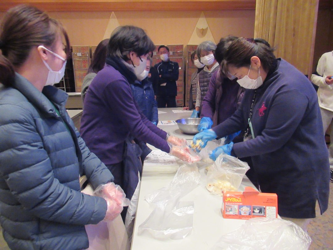 ビニール袋を使用することで水の節約になり、火が使えない時でも簡易的に調理ができるという、災害時に大変役立つ調理法です。
