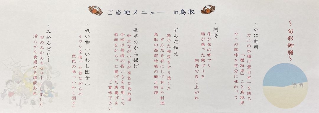 やってまいりました!旬彩御膳!!今回は鳥取県でございます!!