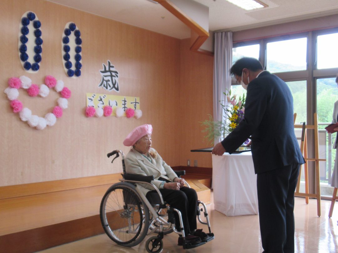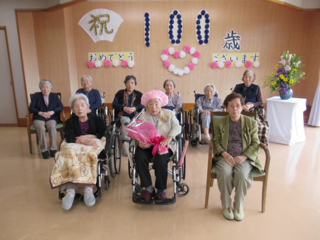 同フロアの入所者様にも「おめでとう」と声を掛けられ笑顔でこたえられていました。