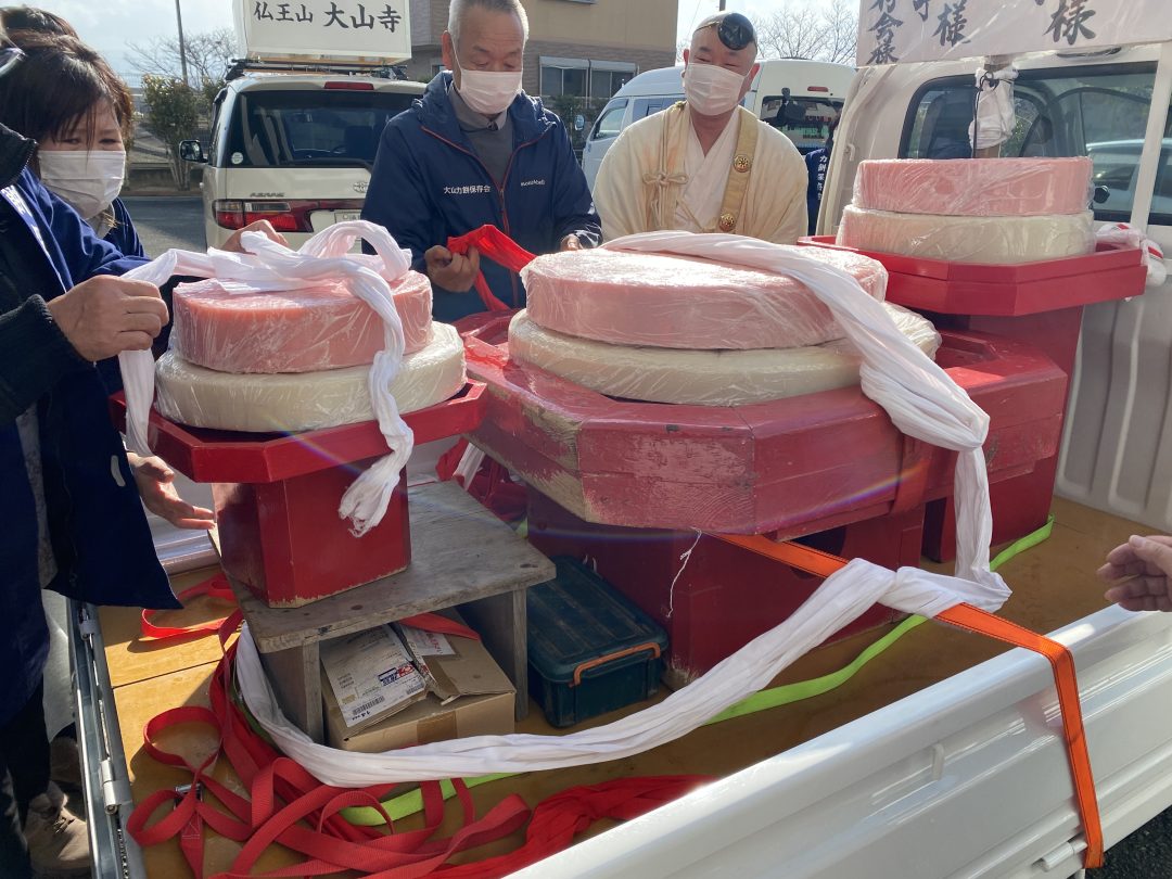 本番に先立ち、大山寺の副住職様、地域の大山力餅保存会の皆様が