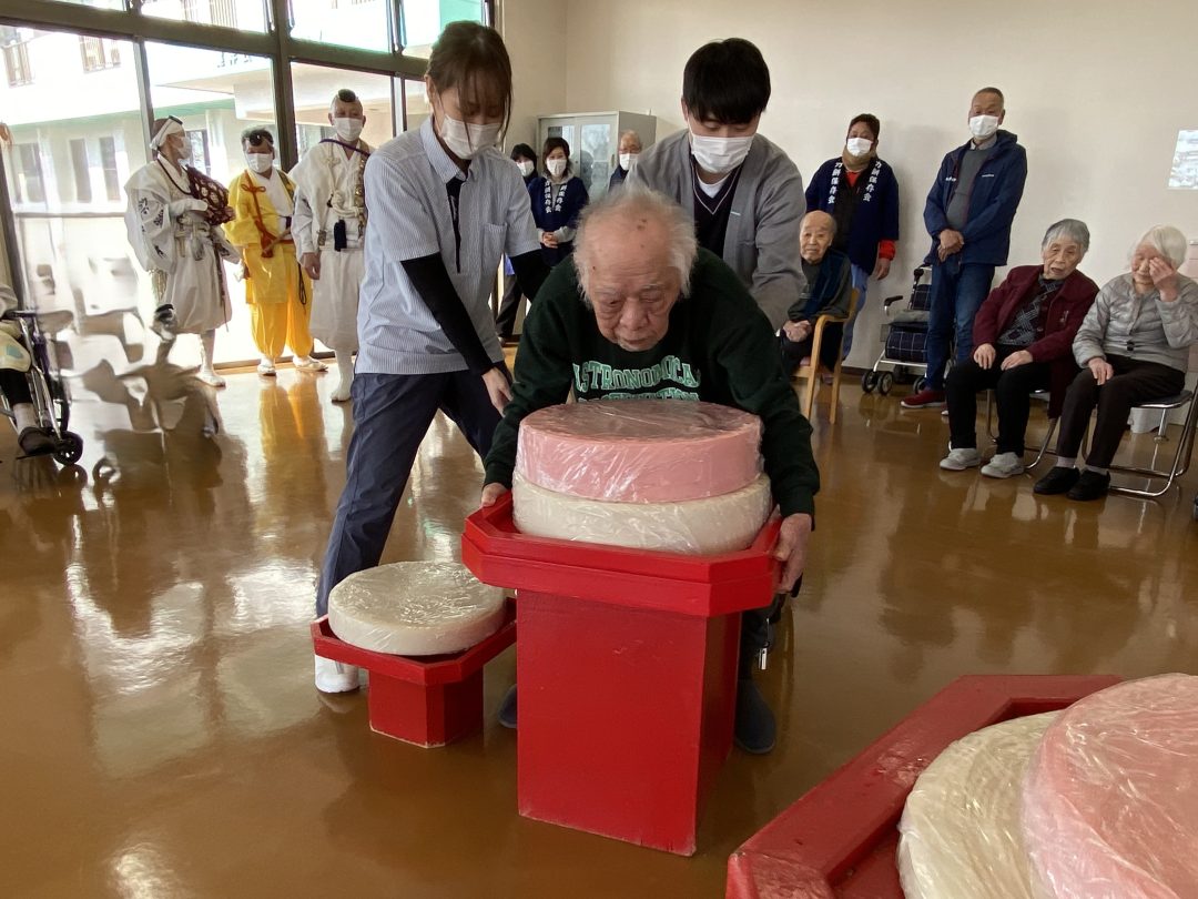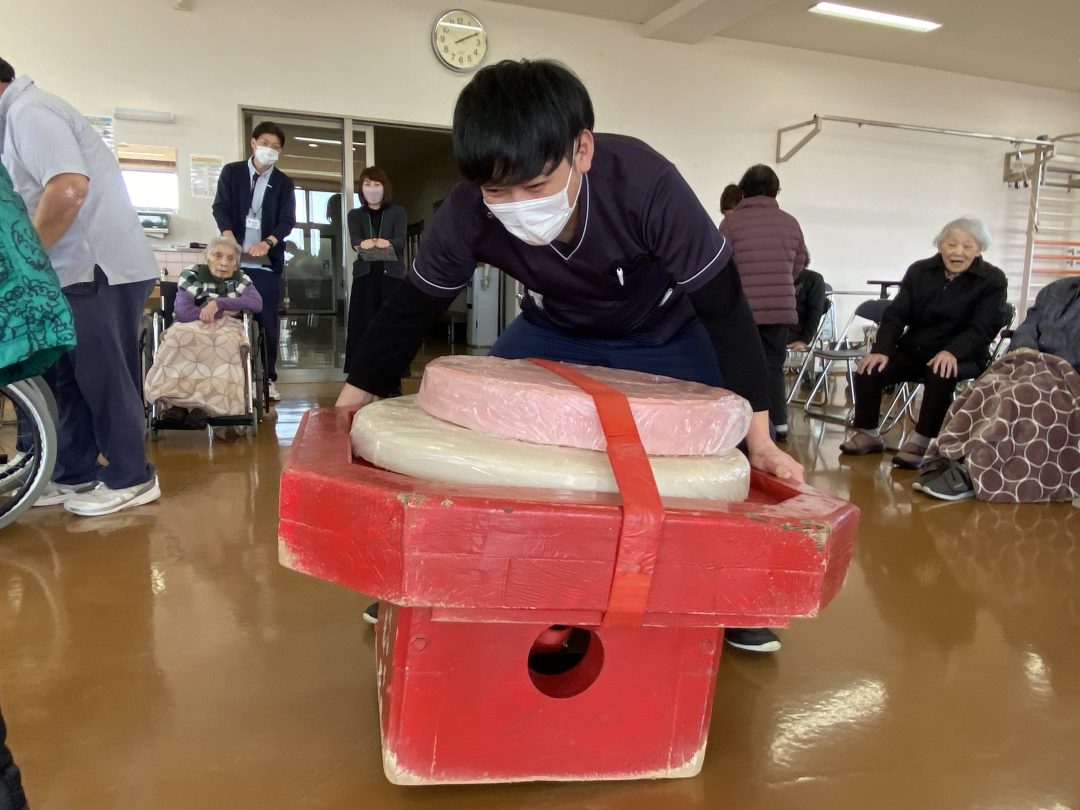 みんなでお餅を持ち上げてみましょう~💪