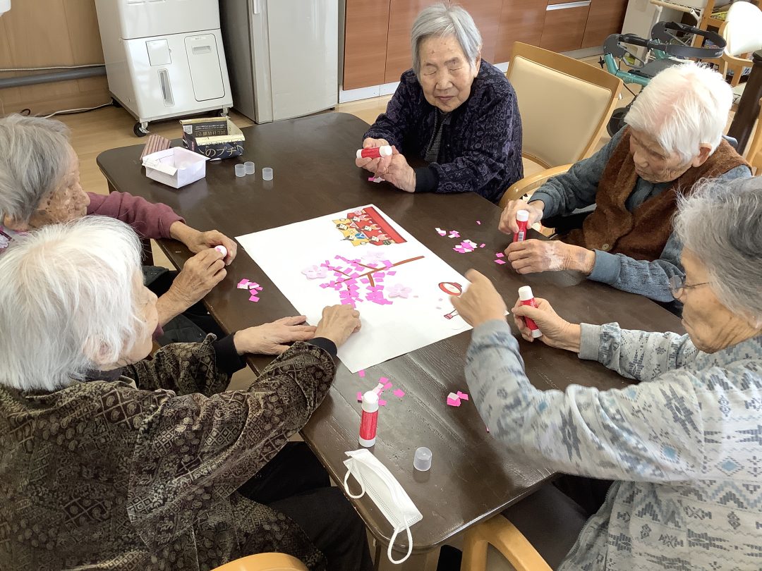 <⭐ハート では 『桃のちぎり絵』 を行いました⭐>