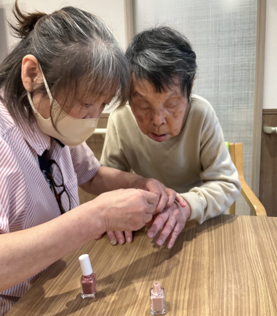 桃色のマニキュアをつけると、皆さま目をキラキラと輝かせながら