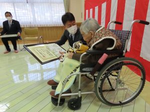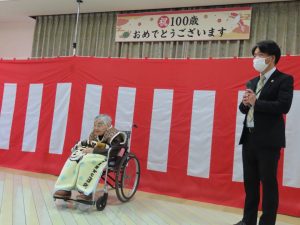 このたび、当施設にご入所されている森口千代子様が、めでたく100歳(百寿)を迎えられ、