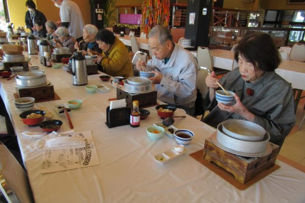 昼食は「饂飩の四國・四國館」にて釜揚げうどん定食をいただきました。茹でたてのうどんはもちもちとした食感で、体も心も温まり、皆さん笑顔で食事を楽しまれていました。