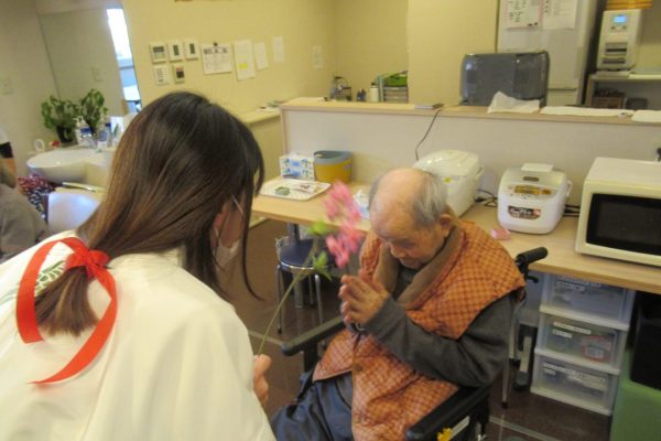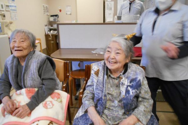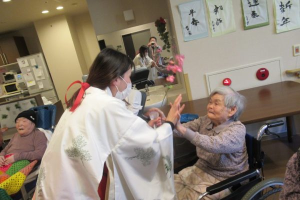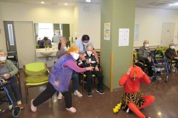 息の合った【つがい】で登場すると、入所者様から豆と元気な掛け声が飛び交いました