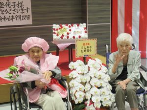 9月12日に、佐竹登代子様が100歳を迎えられ、長寿のお祝いがありました