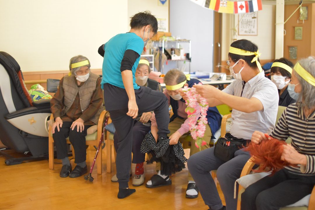 ご利用者様に数々の衣装の中から選んで頂いた物を職員が順番に着せてもらう競技です✨