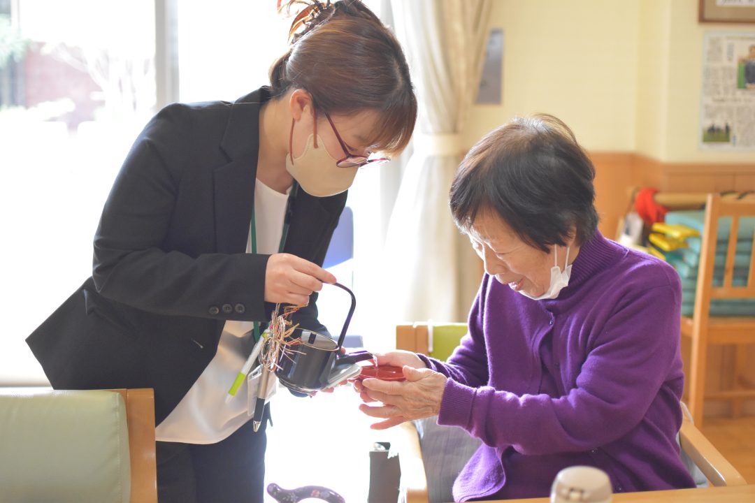 一心太助では新年の恒例行事として「お屠蘇配り」を行いました。お屠蘇には一年の無病息災を願う意味があり、職員から由来をお話ししながら、少量ずつ召し上がっていただきました。