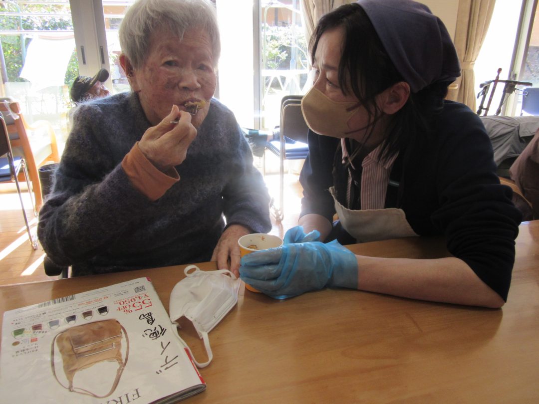 最初は緊張していた利用者様も、出来上がったアメリカンドッグを食べて頂くと、「美味しいね」と素敵な笑顔を見せて下さりました🪇✨