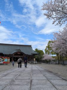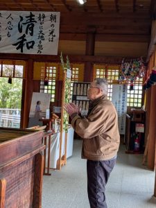職員と一緒にお守り売り場へ行き家族の健康を願うお守りを購入しに。
