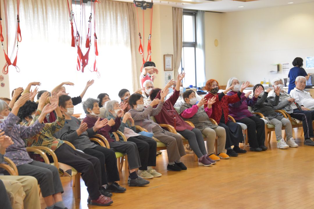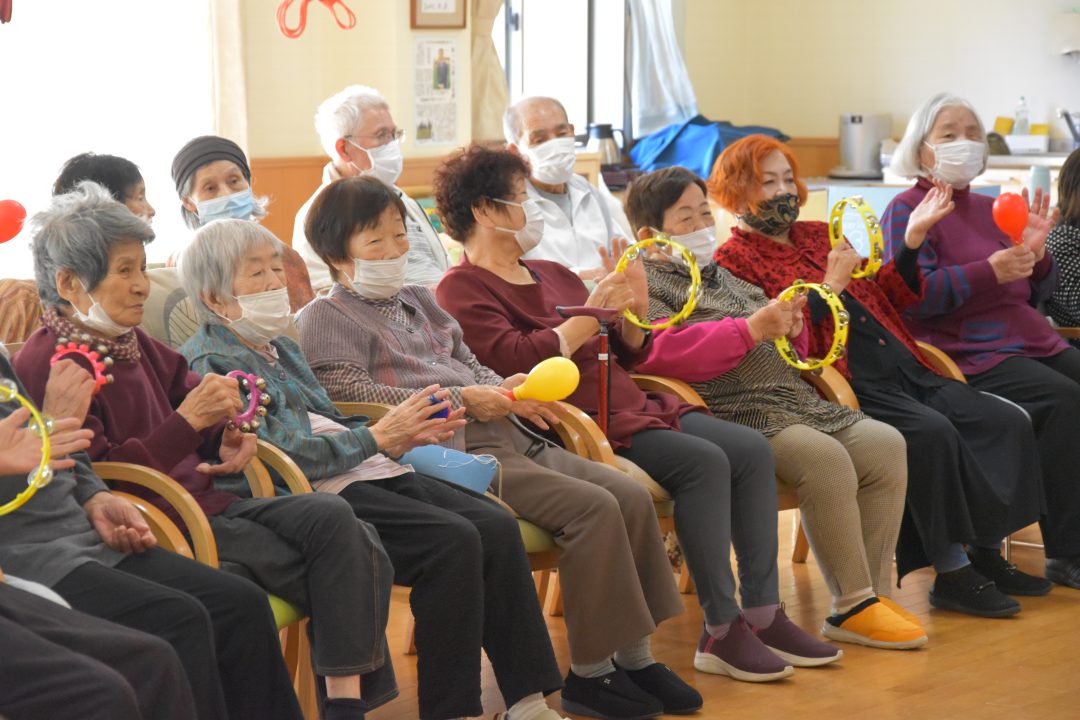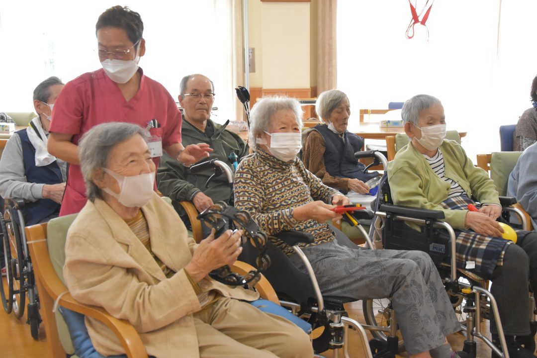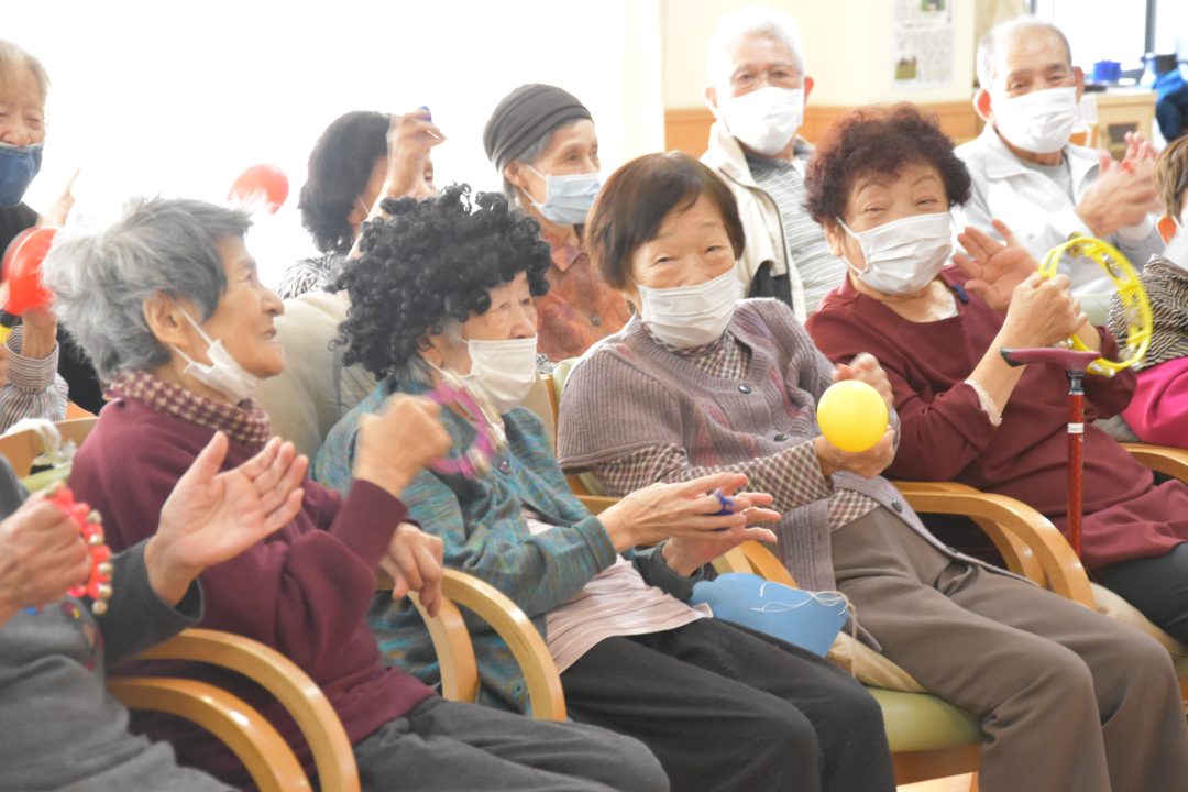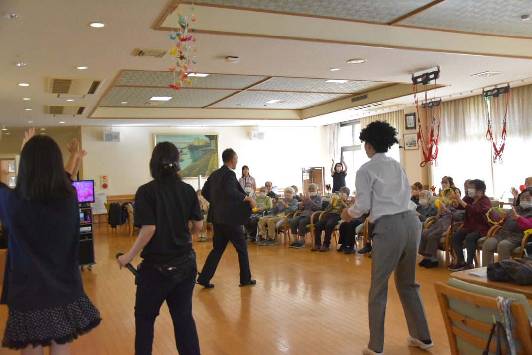 「♪LOVE という字の〜」のフレーズでは、利用者の皆さんも一緒に手を振ったり、リズムに合わせて体を動かしてくださり、とても和やかな雰囲気に包まれました。