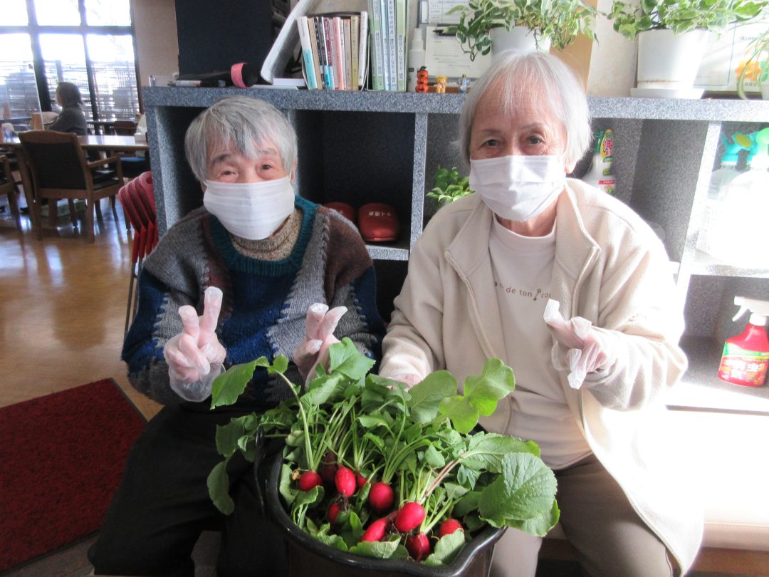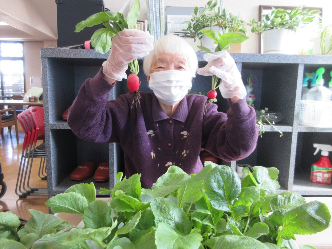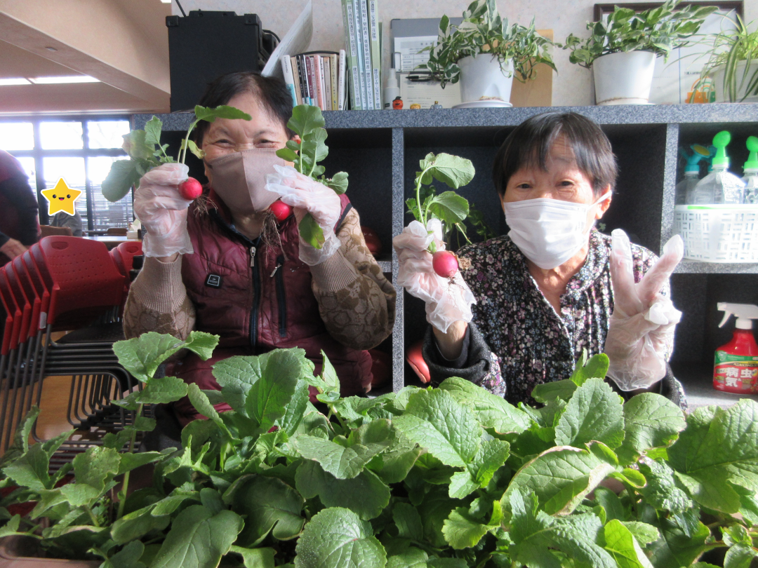 デイ徳農園の野菜はすくすく成長し、ラデッシュが収穫時期となったので利用者様と収穫しました🌟