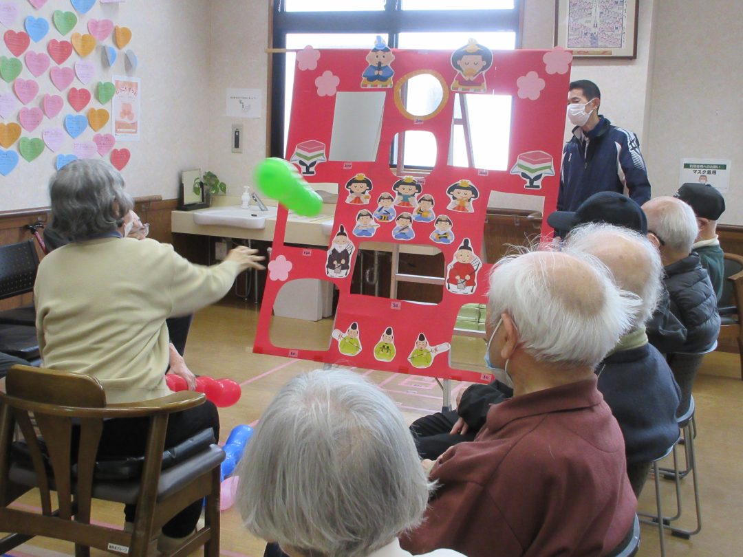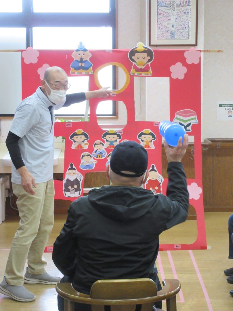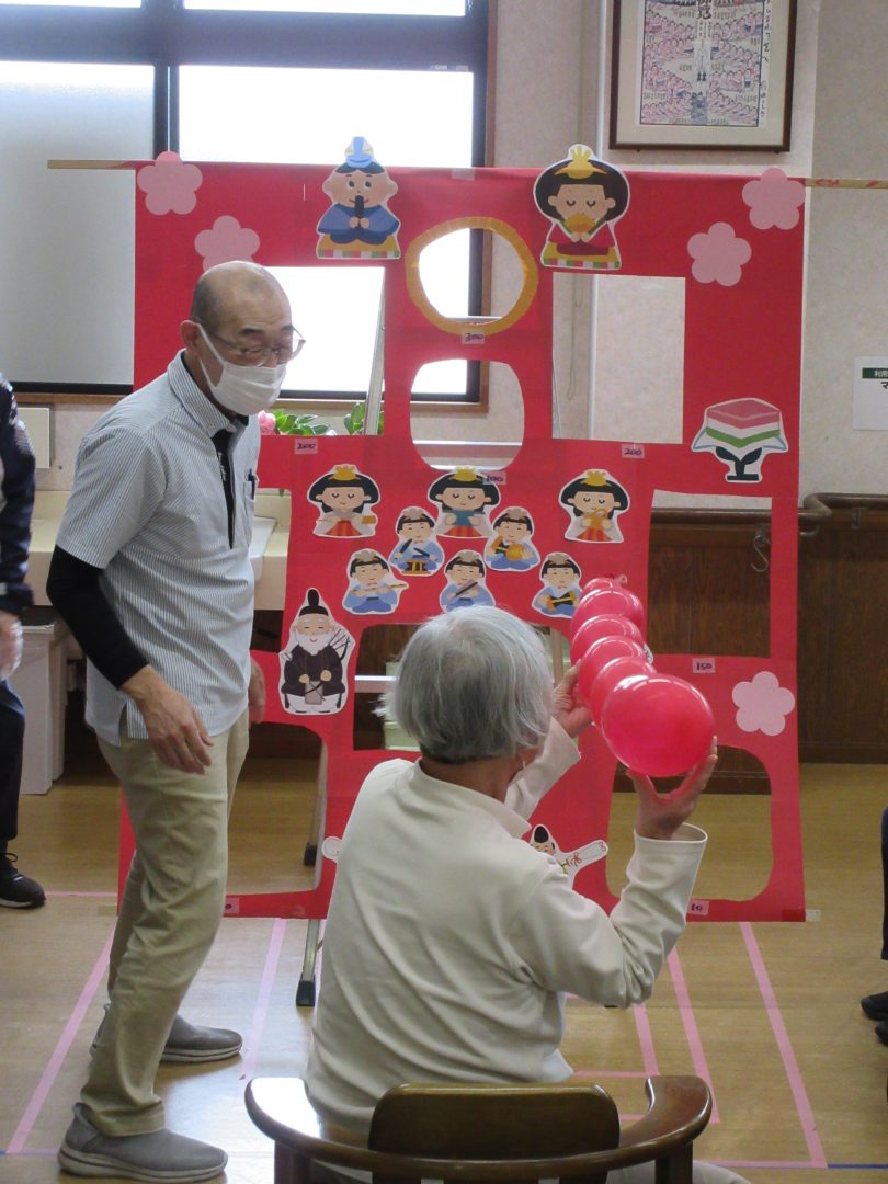 その後のレクリエーションでは、【ひな壇】を設営😊穴の開いた箇所にツイスト風船を投げ入れ、入った合計得点を競うゲームを行いました🌟