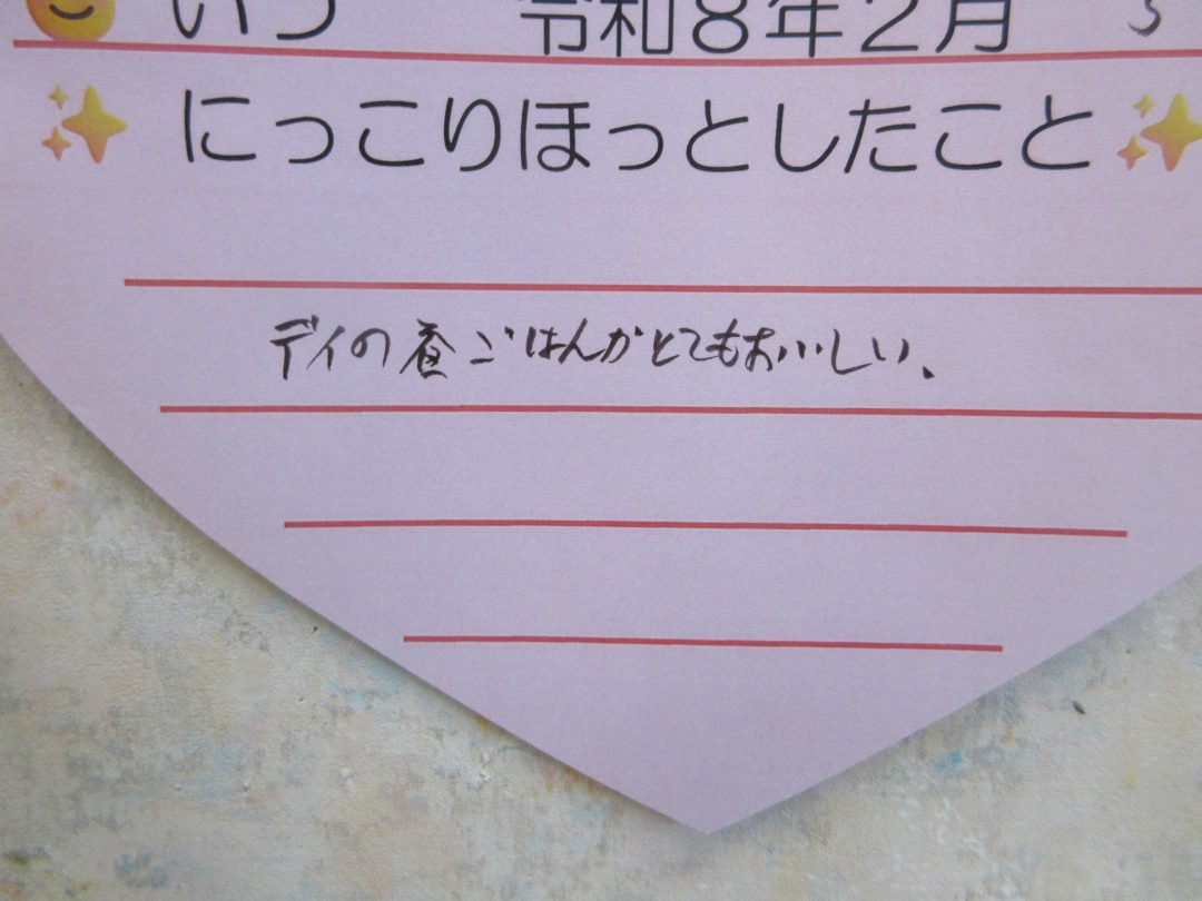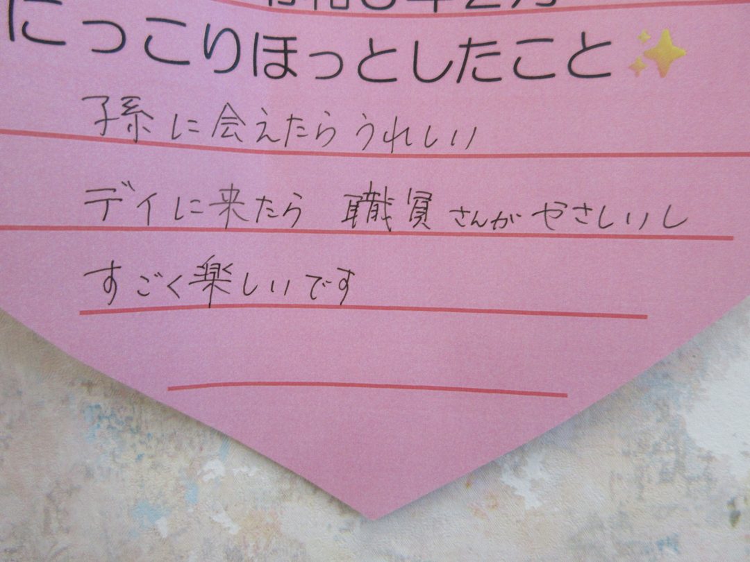 デイ徳ではハートのにっこりホッと台紙を用意し、たくさんのにっこりホッとが集まりました(((o(*゚▽゚*)o)))
