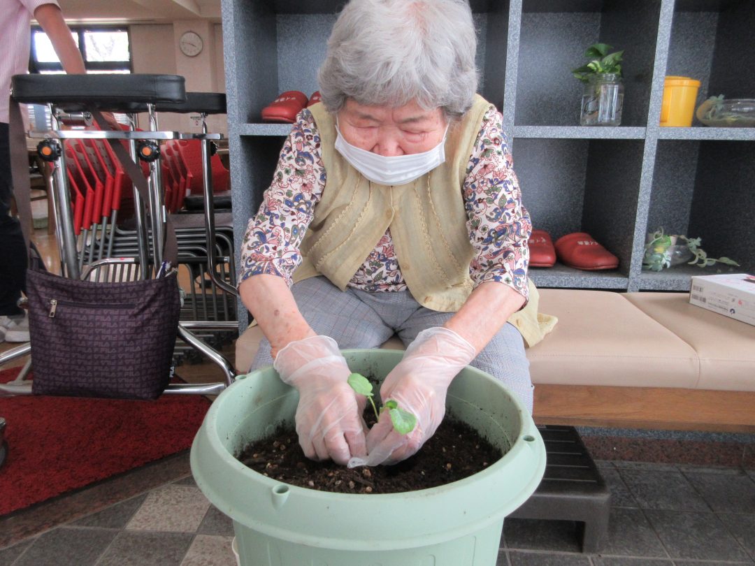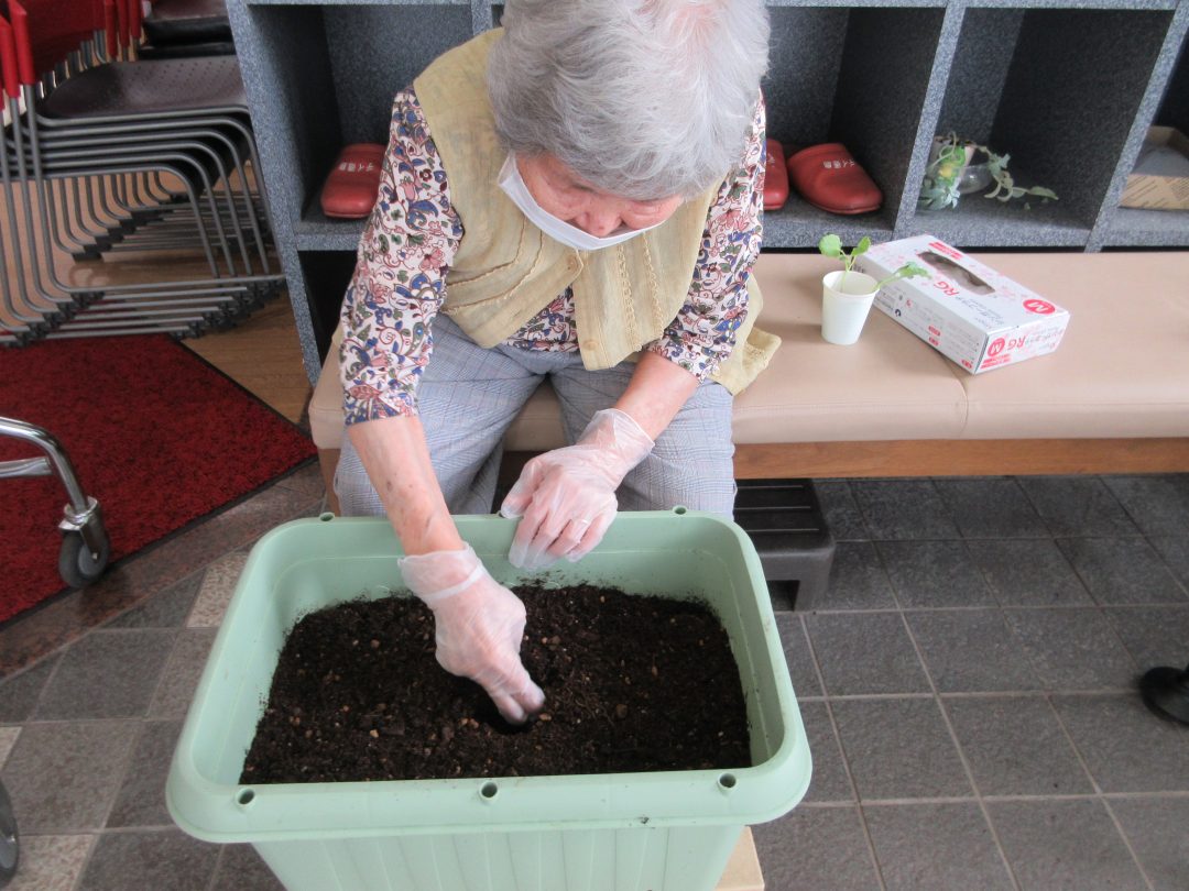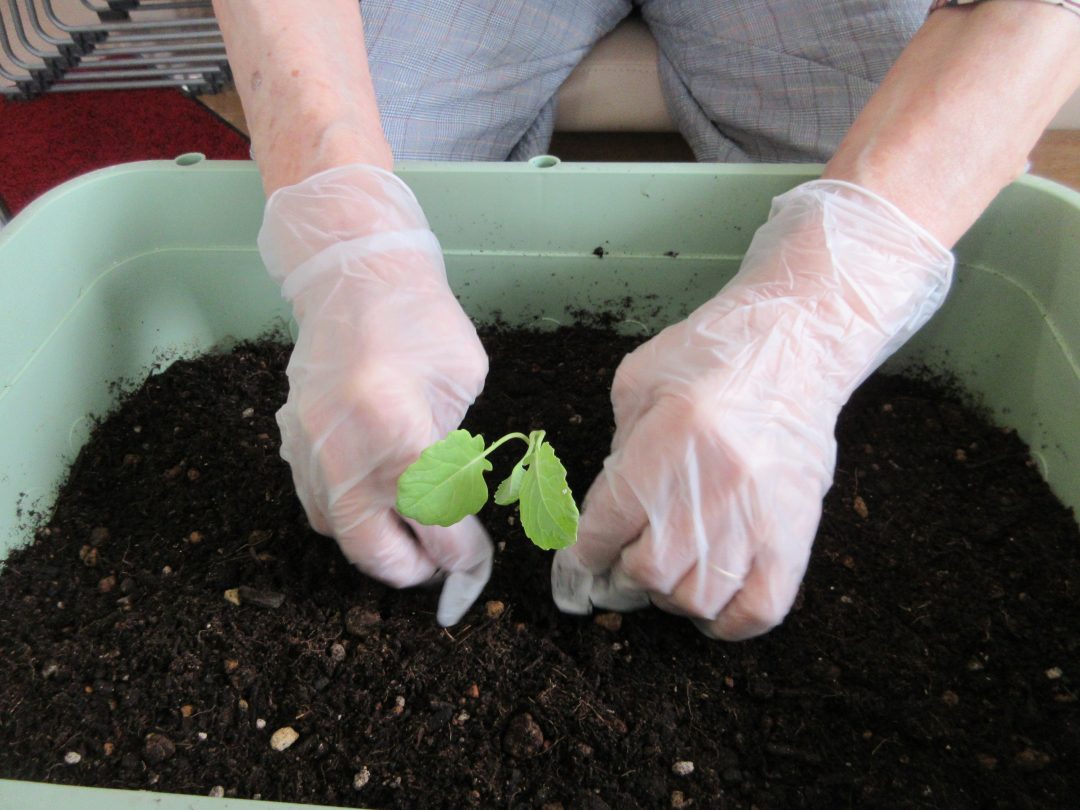 ブロッコリーの苗を利用者様が持ってきてくださったので、早速デイ徳農園のプランターに植え付けを行いました✨
