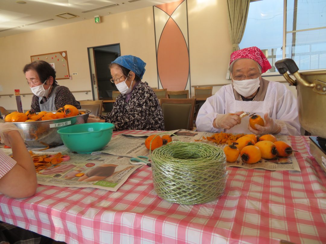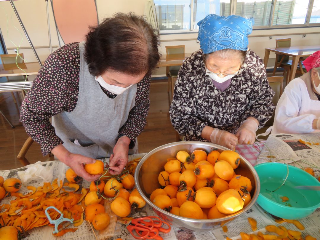 皮をむいた柿をひとつずつ紐に結びながら🧵✨